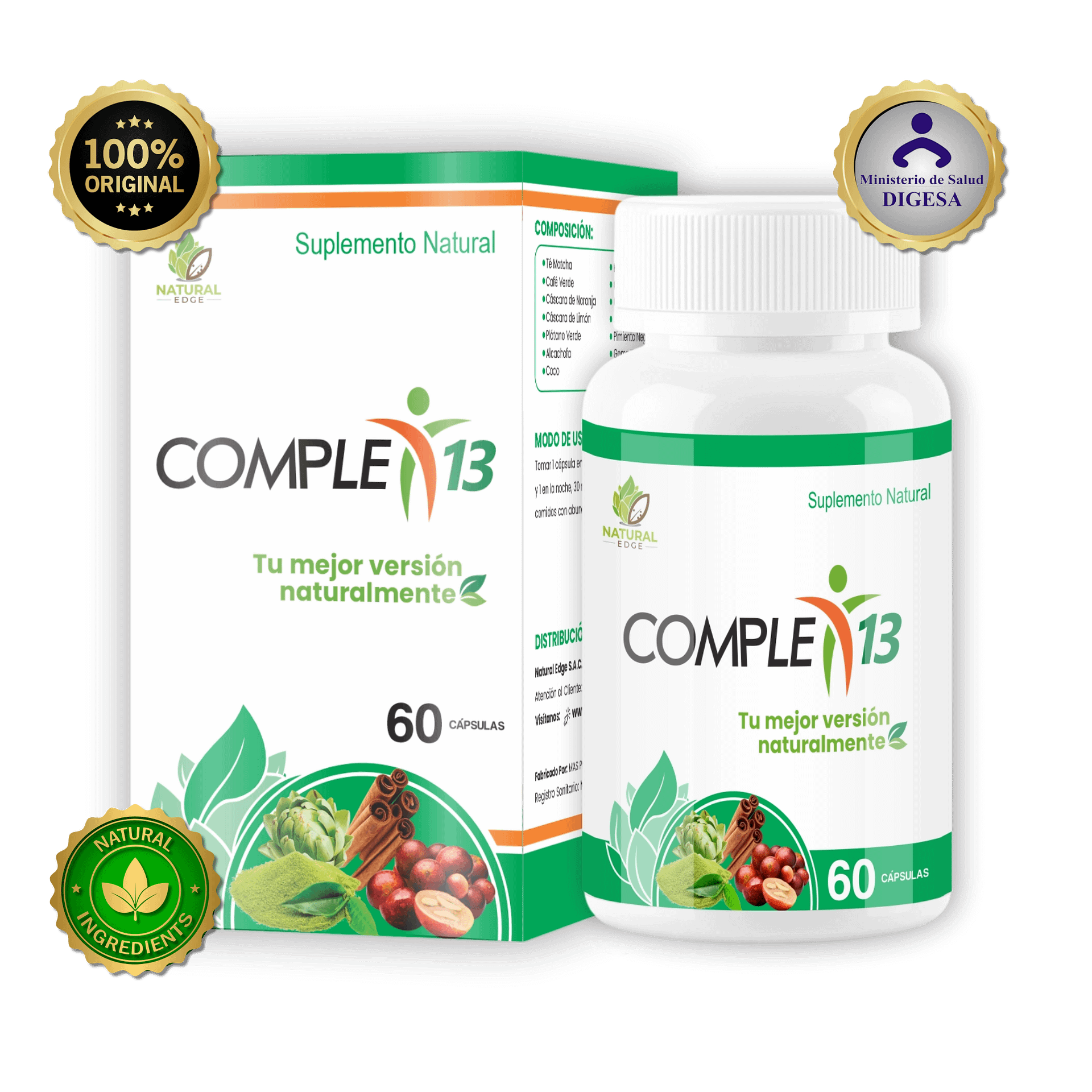 Complex 13 es una fórmula avanzada de origen natural creada para brindar un enfoque integral en control de peso, metabolismo eficiente y limpieza interna. Su acción combina ingredientes que ayudan a acelerar el gasto calórico, reducir la acumulación de grasa y optimizar la eliminación de toxinas, permitiendo que el cuerpo funcione con mayor eficiencia.